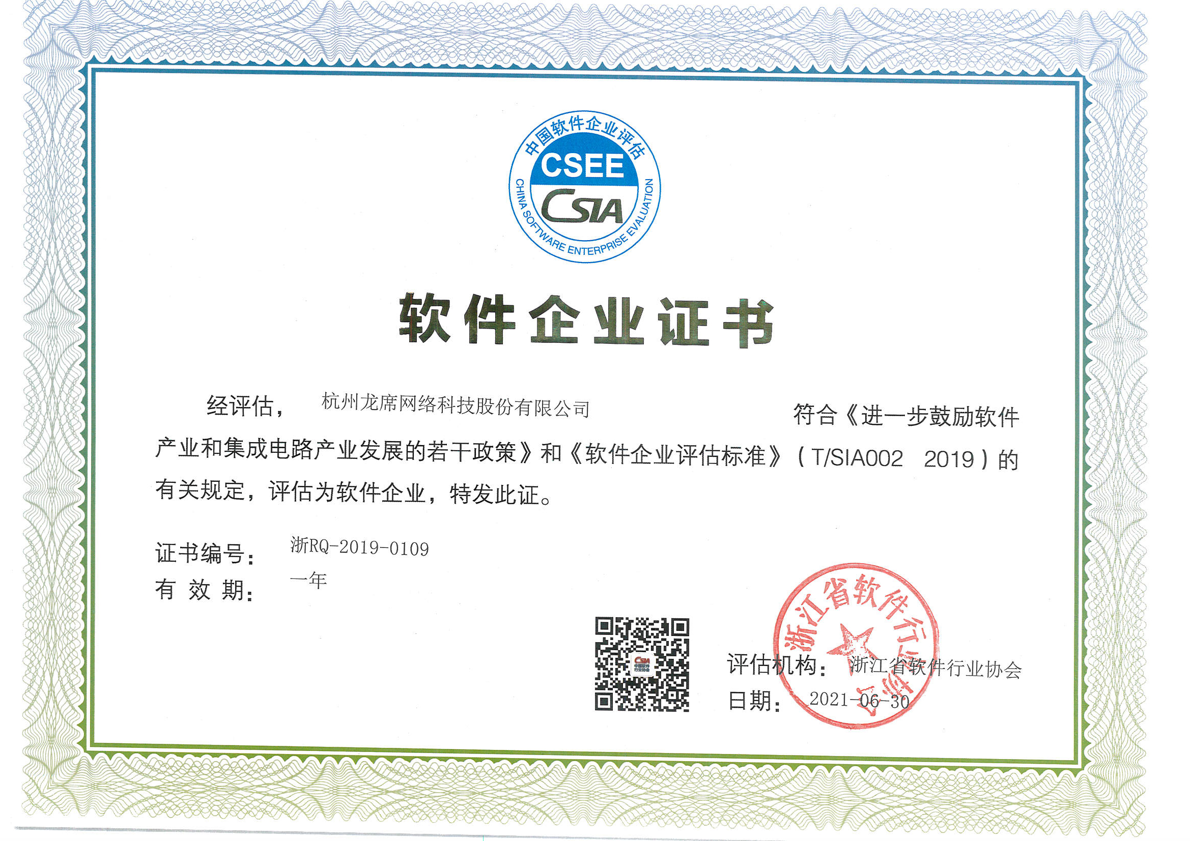 公司先后被評為杭州市雛鷹企業、軟件企業、浙江省科技型中小企業、國家科技型中小企業、杭州市高新技術企業、國家高新技術企業、